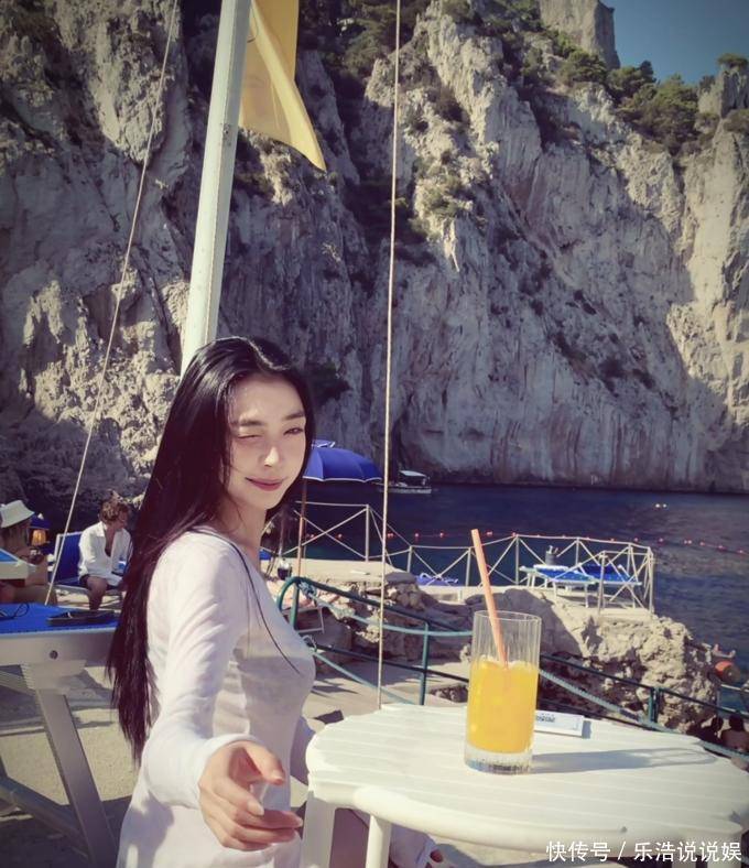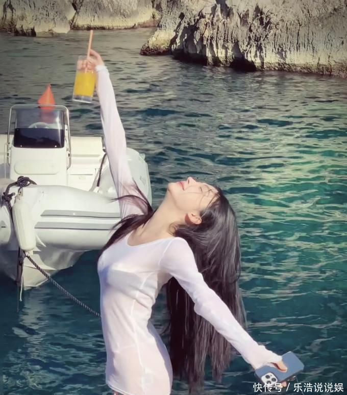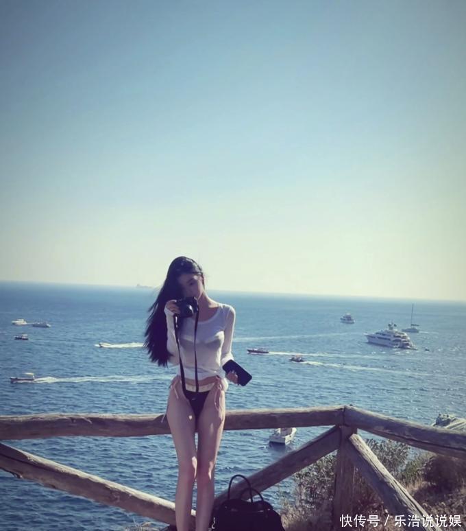 接下来的照片展示了比基尼与白色半透明上衣的搭配,它们若隐若现,展现了绝佳的身材比例!这双腿特别长!她的美丽是全方位、无死角的。她手持相机捕捉那些美丽的景色,而其他人则用相机捕捉那些比风景还要迷人的瞬间。她在豪华车内自由自在地展开身体,站在岸边高举饮品仰望蓝天,羞涩低头,面对镜头wink的她,每一个画面都显得异常美丽!